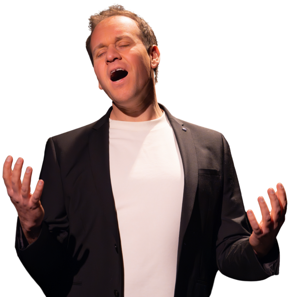 Met uitsluitend eigen werk staat hij regelmatig op het podium — van intieme huiskamerconcerten tot theaters, diners en bijzondere evenementen. Zijn talent om zich moeiteloos af te stemmen op zijn publiek maakt elk optreden uniek en waardevol.